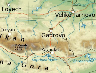 Gabrovians pride themselves on their sense of humour and thriftiness, and there is a whole canon of jokes about Gabrovian meanness of the sort that the English make about the Scots (whom Gabrovians see as brothers under the skin - Gabrovo is twinned with Aberdeen). Most of the jokes run along the lines of the Gabrovians who stop their clocks at night to save the machinery, the cats whose tails are docked so that you can shut the door quicker behind them and all the rooms in Gabrovo that are left unpainted to make them bigger. Cannily, Gabrovians have capitalised on this by building a House of Humour (Dom na Humora i Satira) and holding a biennial Festival of Humour (May of odd-numbered years). Historical and humorous attractions apart, Gabrovo is an important commercial centre specialising in the production of leatherwork and cotton, so much so that it is known as the `Bulgarian Manchester`.